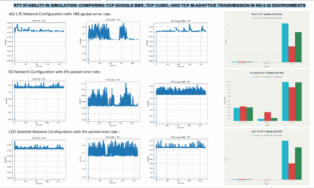 RTT STABILITY IN SIMULATION: COMPARING TCP GOOGLE BBR, TCP CUBIC, AND TCP M-ADAPTIVE TRANSMISSION IN NS-3.42 ENVIRONMENTS